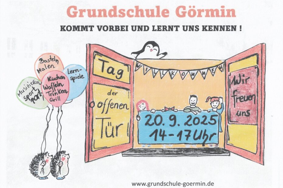 Um unsere Schule kennenzulernen besuchen Sie uns gern am 20.09.2025 zwischen 14:00 und 17:00 Uhr zum Kindertags-Fest der Gemeinde Görmin, welches auf dem Schulgelände stattfindet. An diesem Tag sind auch die Türen der Schule fürTag der offenen Tür 2025
